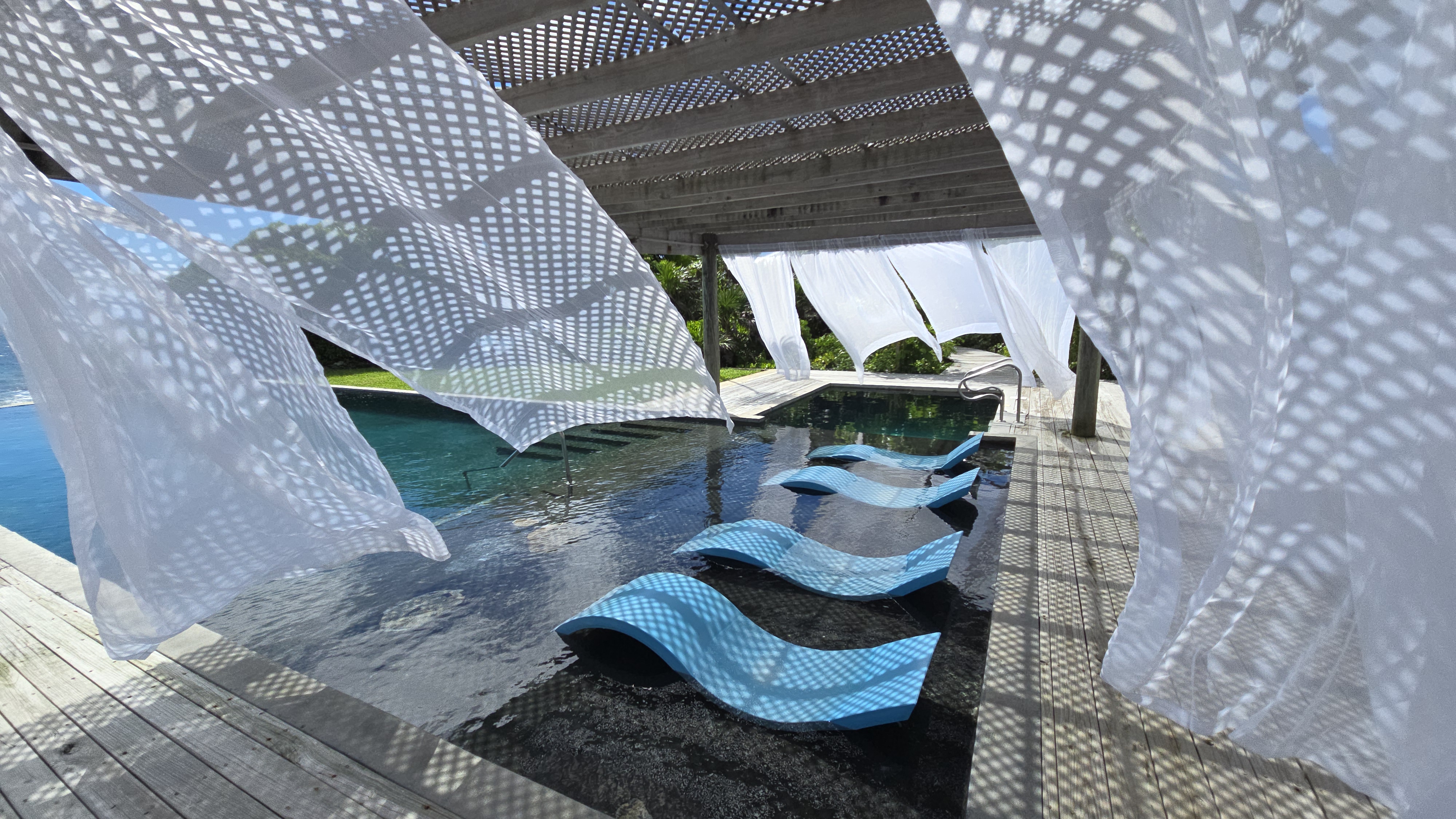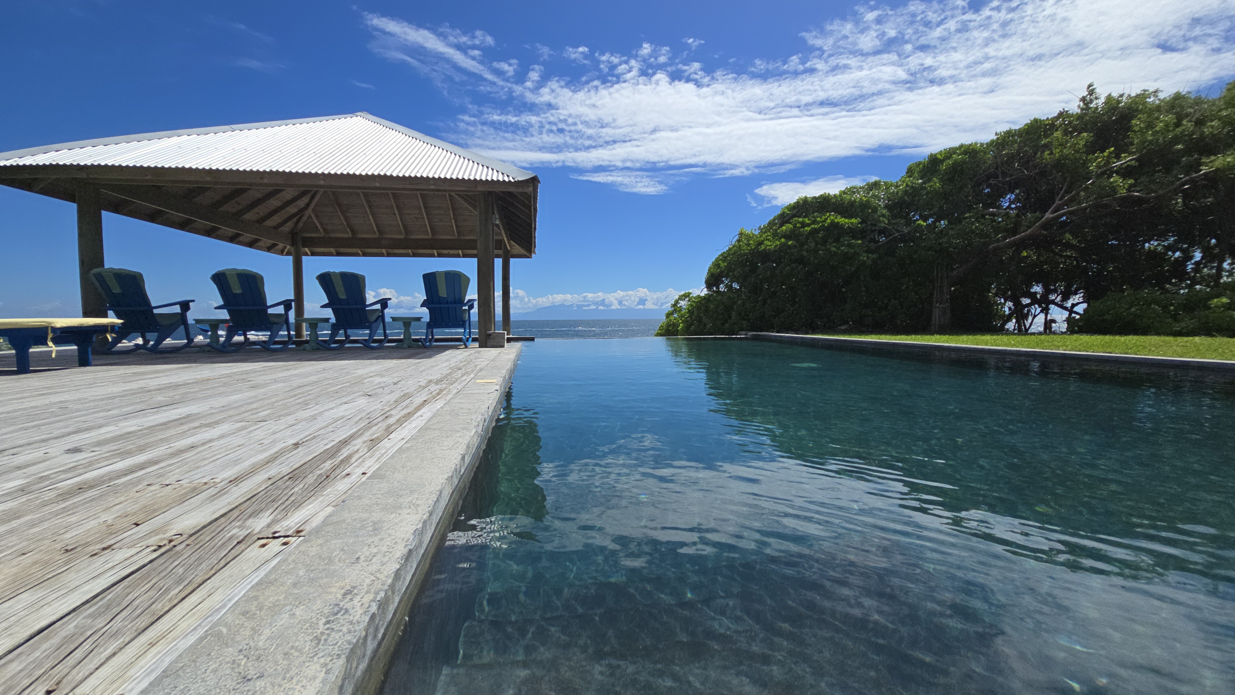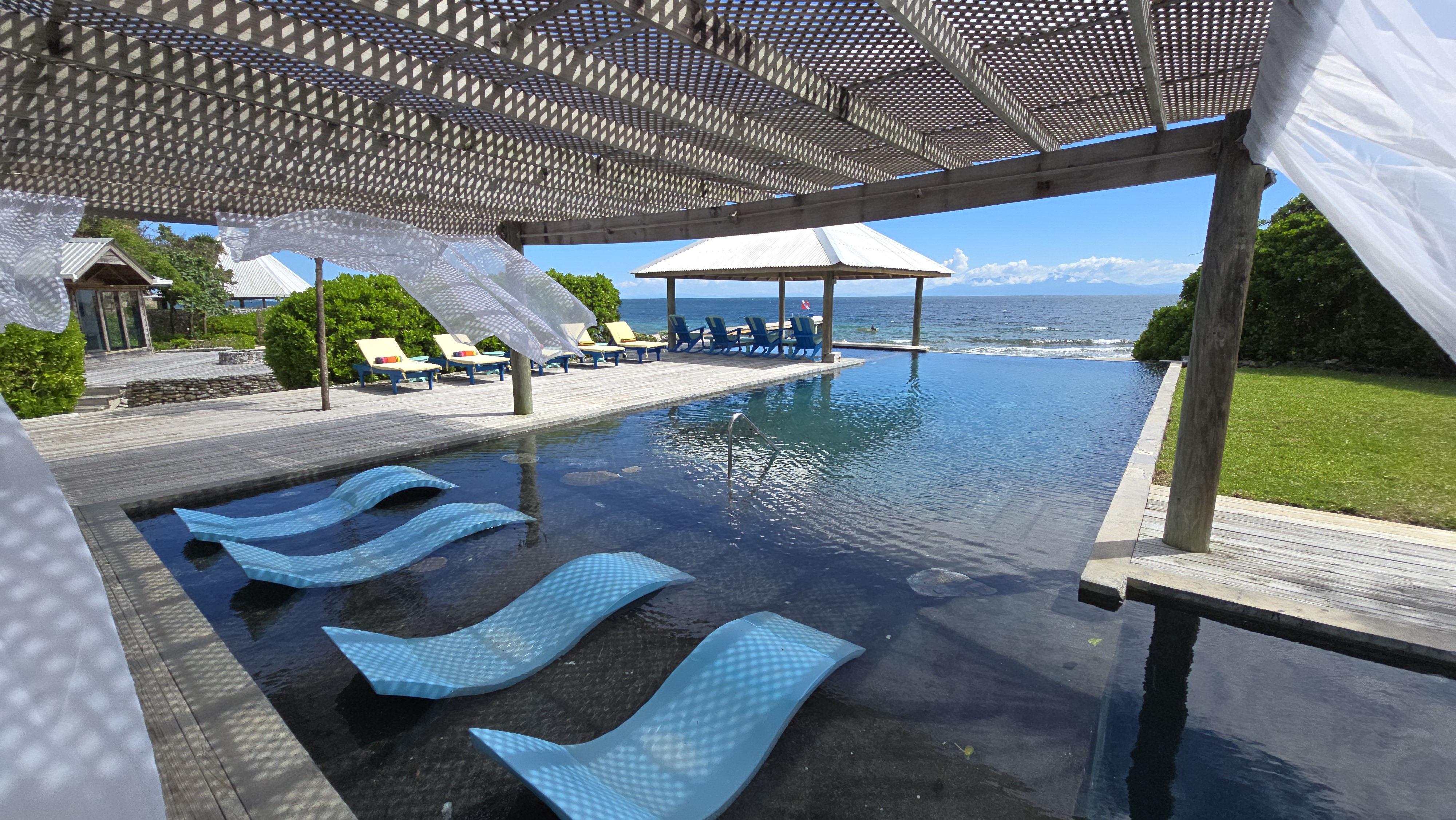 Amenities & Lifestyle – Open-air restaurant and bar, dive/snorkel facilities, spa spaces, and landscaped grounds. – There were 16 upscale rooms plus four bungalows , all ocean facing, with private bathrooms, air conditioning, ceiling fans, and balconies. Views both of ocean and mountains in some rooms. The additional rooms and bathrooms quoted relate to staff quarters and the owners private residence.